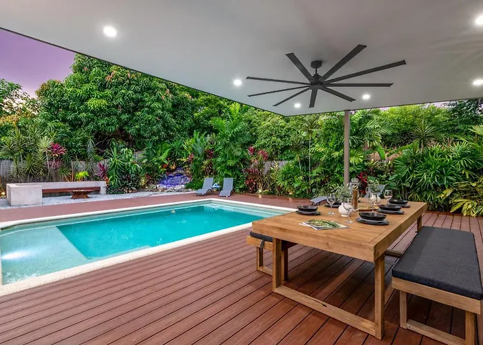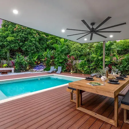 Paradiso cuenta con un patio con vistas a la piscina y una piscina. Con un aparcamiento, la villa se encuentra a 20 minutos a pie del Wildlife Habitat Port Douglas.